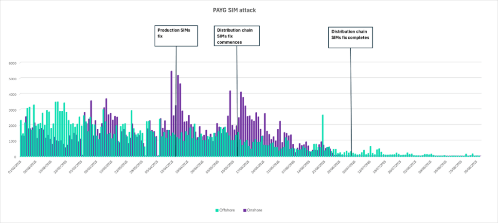 - Mobile Network Operators have applied a financial requirement against the use of the PAYG SIMs. Now they must be loaded with money via credit or debit card before they can even receive an SMS. This means a direct friction is placed in the pathway of fraudsters, increasing their costs and the risks of attempting to use this route.